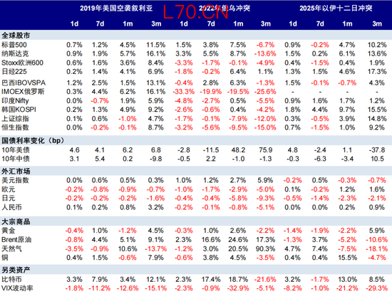 风险偏好收缩是地缘风险影响全球市场最直接的“套路”。地缘冲突通常具有突发、无差别冲击和瞬时这三个共性,正因如此,如果只是停留在这一层面,影响往往不足为虑。我们梳理了1990年以来历次典型、特别是涉及到产油国局部冲突时的表现(图表7),发现1)地缘冲突初期打压风险偏好,导致避险资产受益而风险资产受损;2)局部冲突的影响往往是脉冲式,冲突爆发后一周至一个月内资产价格波动剧烈,随后逐步修复;3)新兴市场受冲击更大(《地缘风险如何影响资产价格?》)。