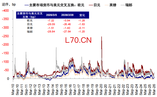 图表8:主要市场汇率与美元的交叉互换基差小幅走阔