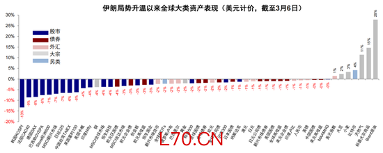 图表2:自2月28日伊朗局势升温以来,布伦特原油和天然气领涨,韩国及欧洲市场领跌