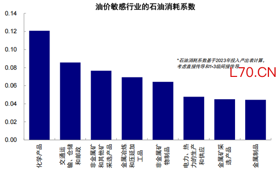 哪些行业对油价更敏感?我们基于2023年中国42部门投入产出表测算各行业对石油成本敞口,发现:1)化学制品、非金属矿物制品等的石油成本占比较高,因而面临更高的成本压力;2)交通运输(包括航空等)用油较多,同样受油价影响较大;还有金属冶炼加工等(图表25)。