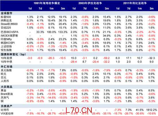 图表7:我们梳理1990年以来历次典型、特别是涉及到产油国局部冲突时的表现进行对比,发现地缘冲突爆发在短期打压风险偏好