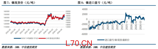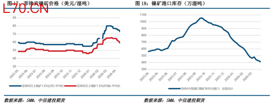 沪镍2606参考区间140000-160000元/吨。SS2606参考区间14700-16100元/吨。