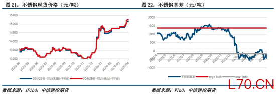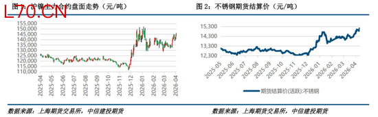 消息面上,受2026年RKAB配额大幅削减影响,WBN矿山将于5月停产维护,消息刺激下镍价偏强运行。另一方面,中东局势影响冲击仍在,印尼市场面临硫磺断供风险,预计湿法项目受冲击最为严重,目前MHP流通紧张,镍钴系数坚挺,一体化转电镍成本支撑或将大幅抬升。不锈钢方面,行情基本随镍价一同波动,但五一假期临近,市场短期看好节日需求,为钢价提供额外支撑。总的来看,目前镍市供应扰动明显,利多形成共振,对弱需求的反应有所钝化,二次通胀的逻辑愈发牢固。