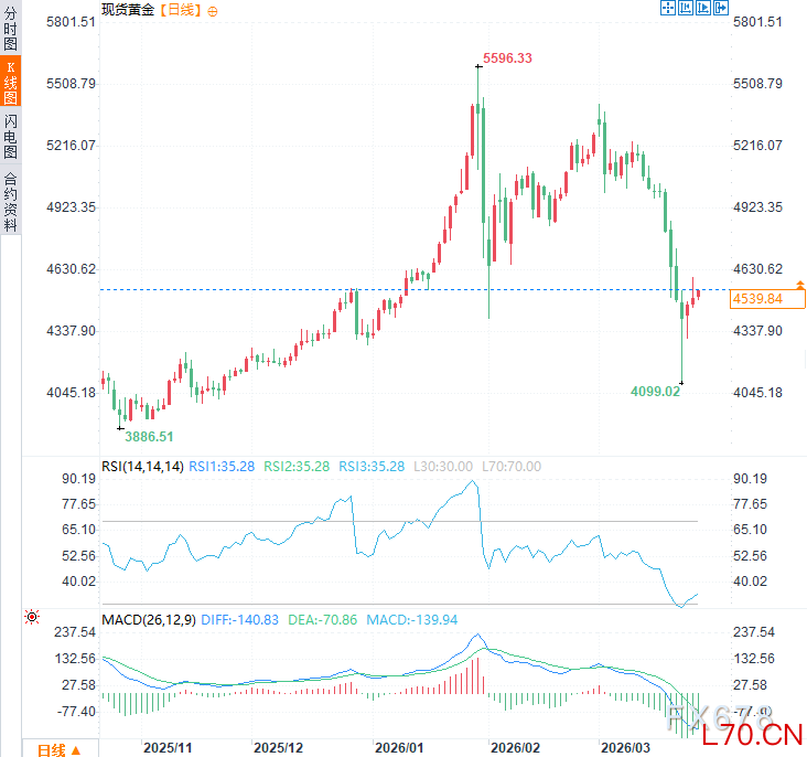 (现货黄金日线图,来源:易汇通)